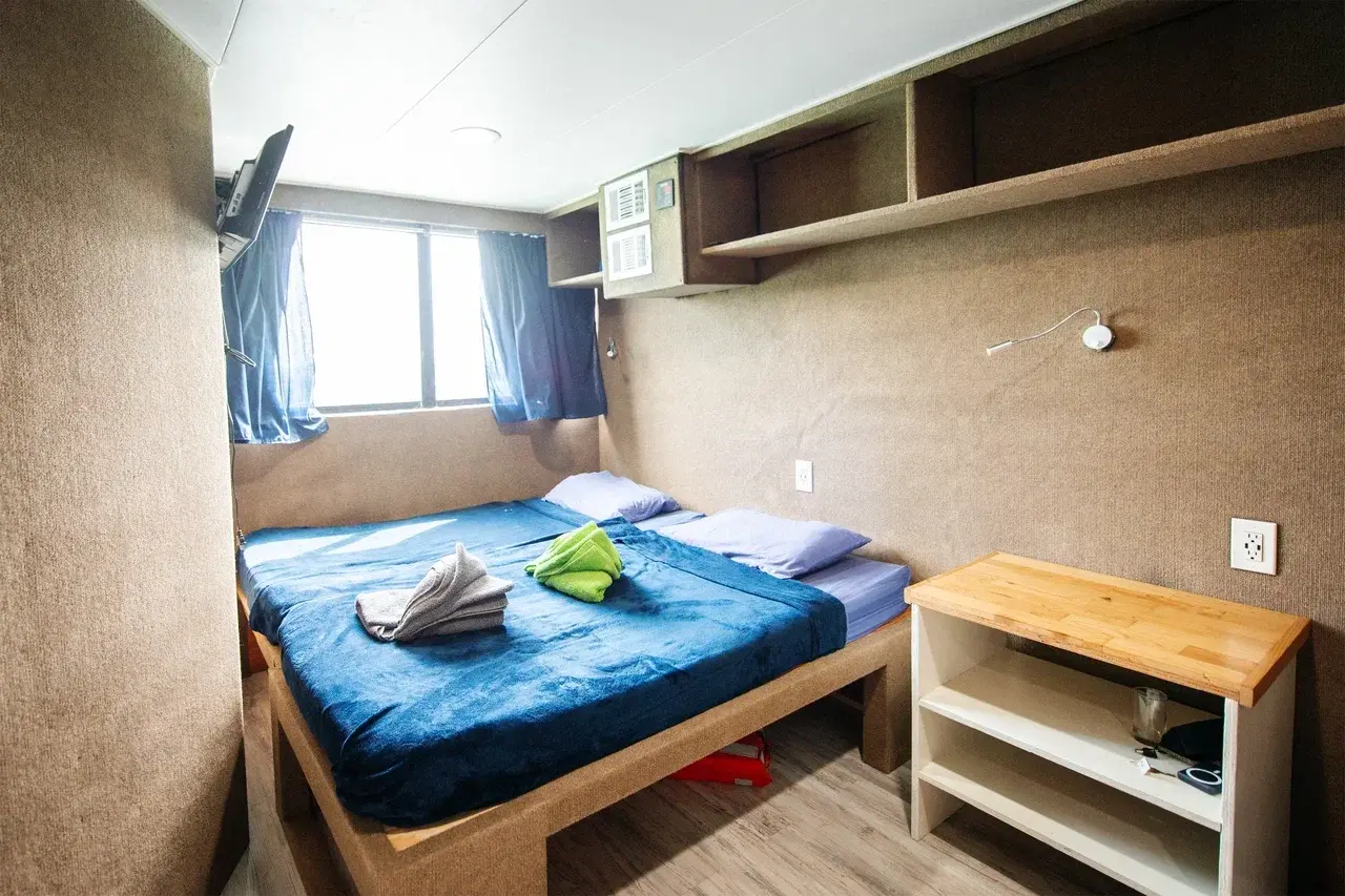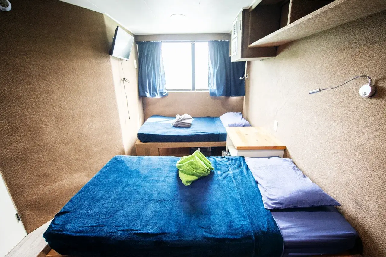 Раньше каюты на корабле были двухъярусные, что уже не соответствует современным требованиям комфортного отдыха на дайвинг-сафари. Теперь каюты реконструировали и реорганизовали так, что обе кровати разместились на одном уровне с удобным подходом к каждой из них. Это позволит сделать отдыха на корабле еще более удобным и комфортным.